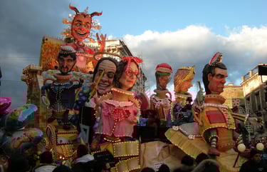 El carnaval remonta sus inicios al siglo XVI y se ha consolidado como uno de los más tradicionales y bellos de Italia, teñido de cultura siciliana y conocido por sus carrozas decoradas con flores y luces.